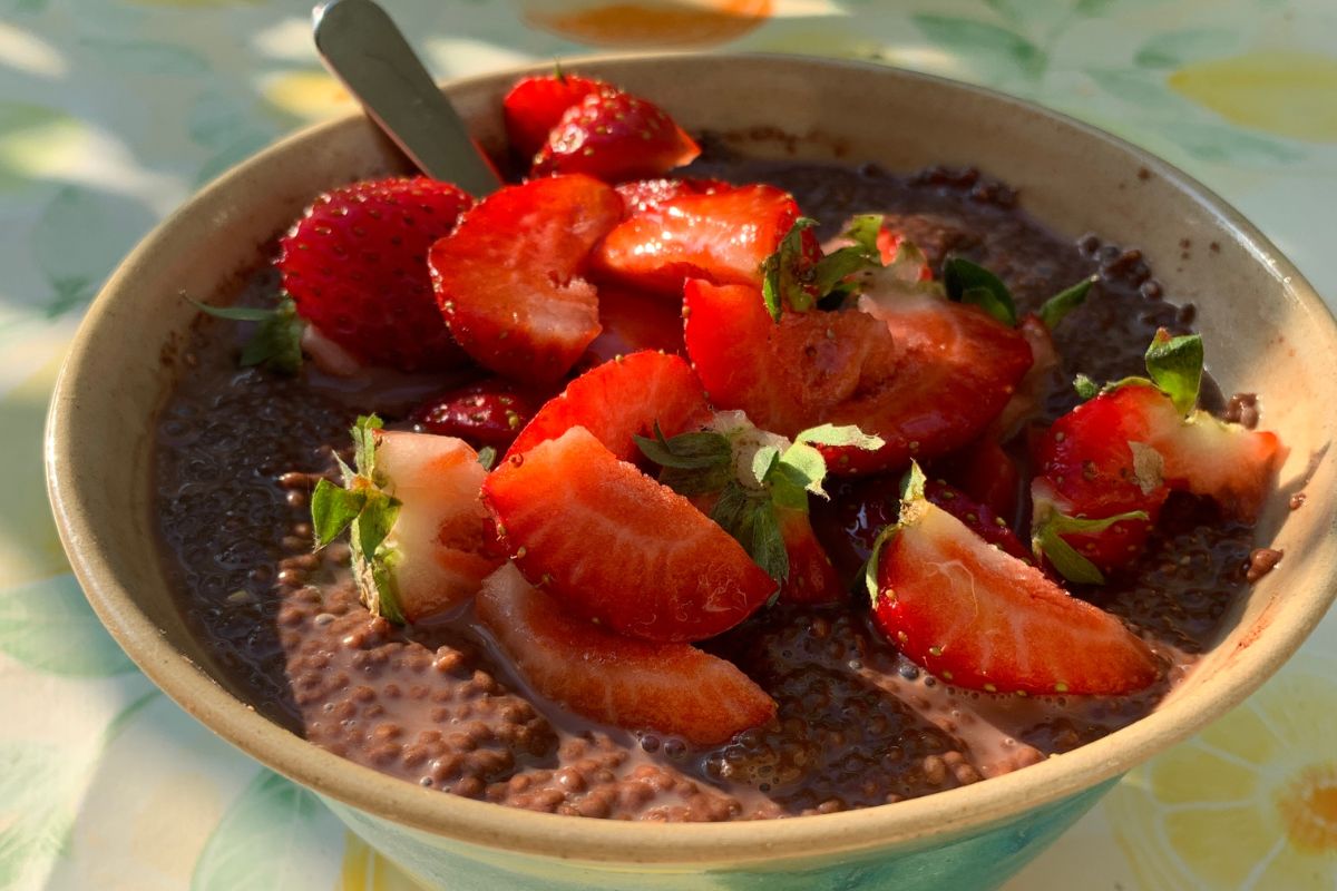 Deze chia-chocoladevla zit boordevol ijzer, calcium en antioxidanten. Gezond genieten dus.