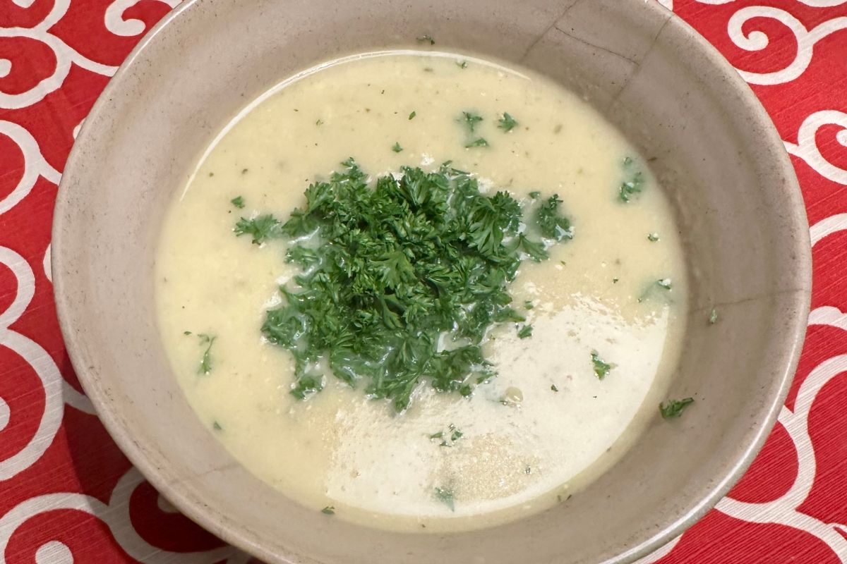 Roer het citroensap door de soep en garneer, indien gewenst, met de peterselie of koriander.
